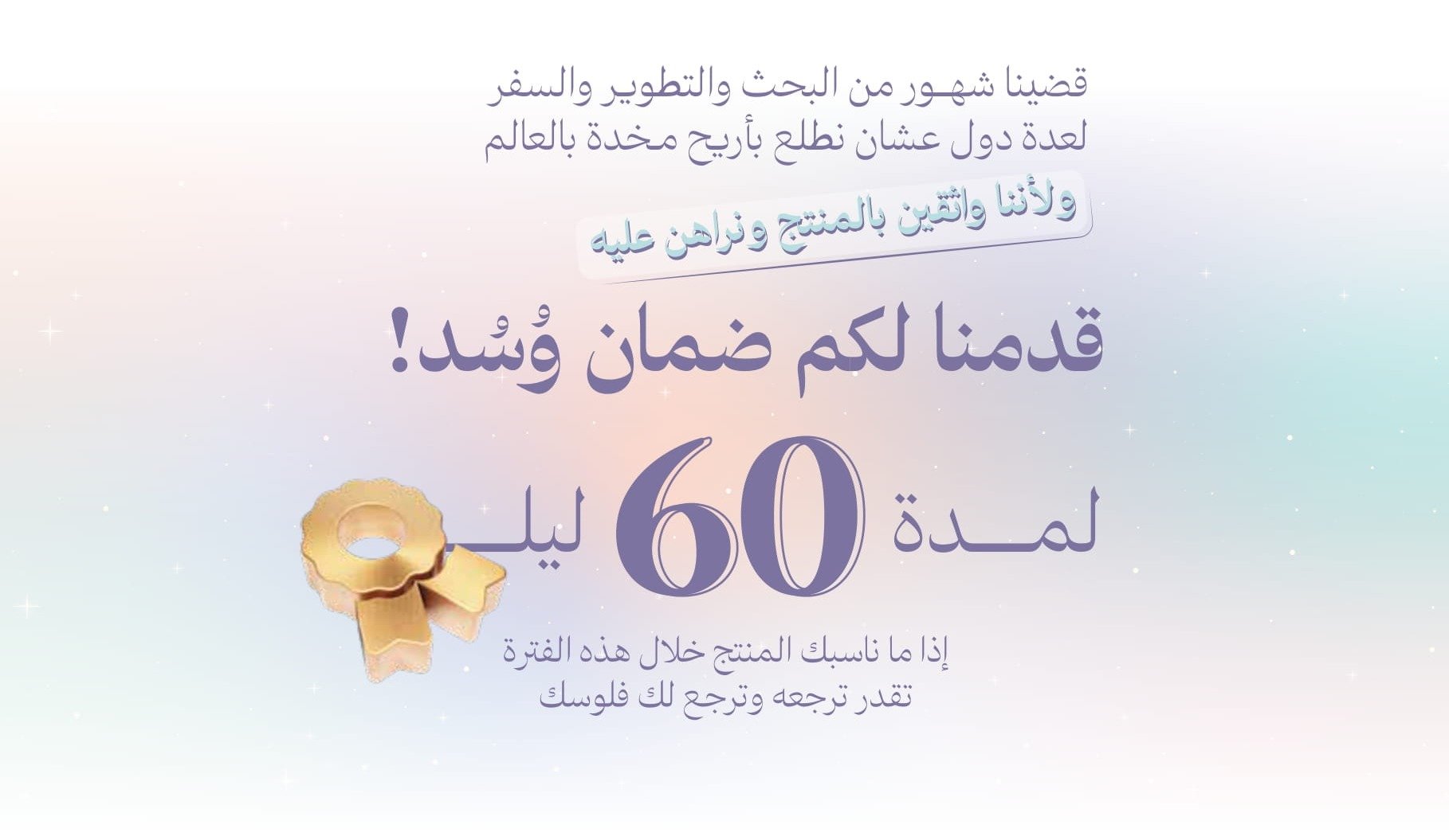 لأننا واثقين بجودة منتجنا٫ قدمنا ضمان لمدة 60 ليلة٫ ما ناسبتك لأي سبب؟ أبد بنرجع لك فلوسك