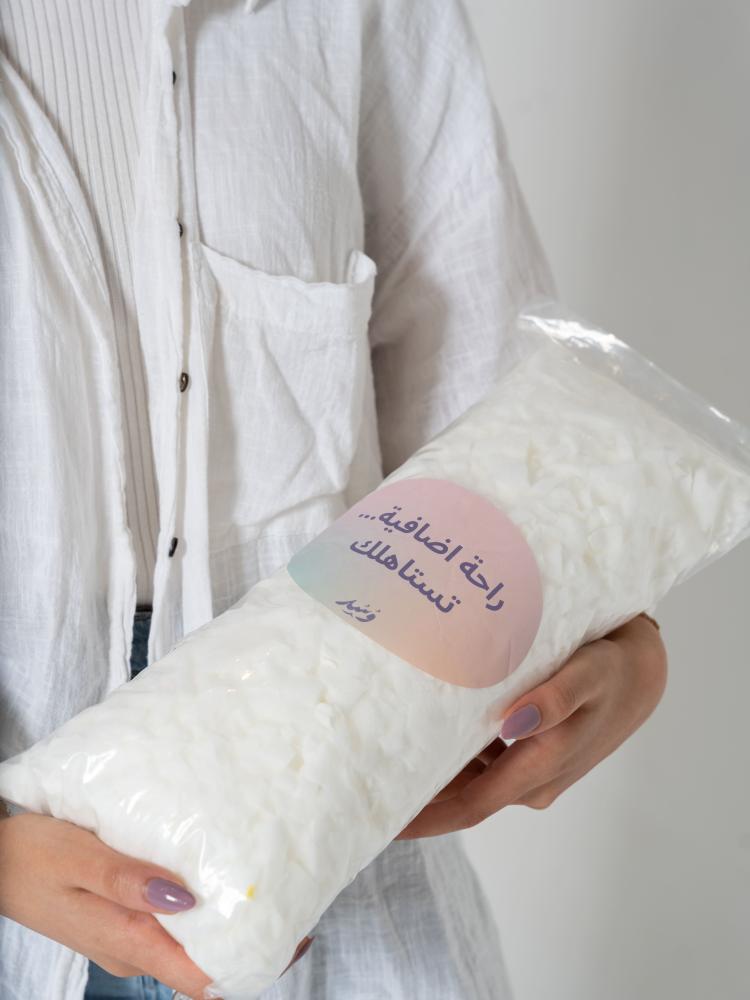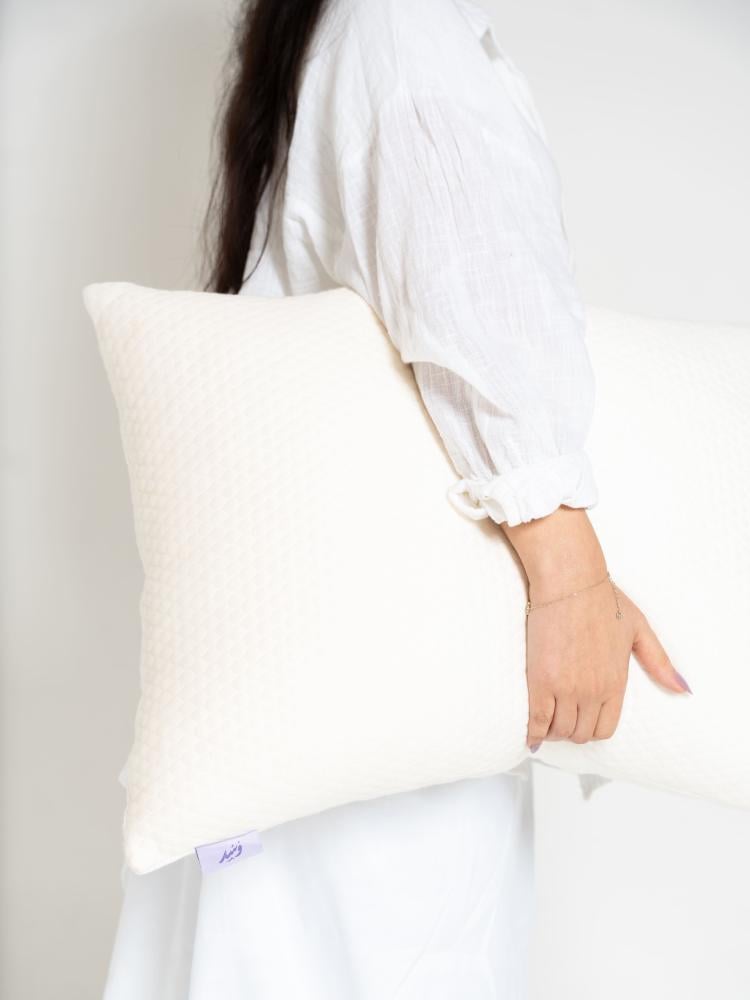 "استمتع براحة ما بعدها راحة مع مخدتنا المميزة، المصممة خصيصاً لتوفر لك تجربة نوم فاخرة ومريحة. تجمع مخدتنا بين جودة الخامات الفاخرة وتصميم ذكي يضمن دعم مثالي لرقبتك ورأسك طوال الليل. مع إمكانية إضافة فوم إضافي للتخصيص، تقدر تختار مستوى الراحة اللي يناسبك بكل سهولة.